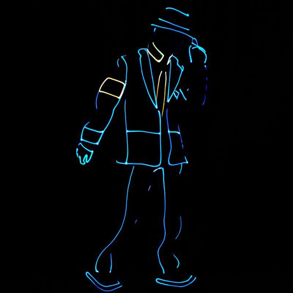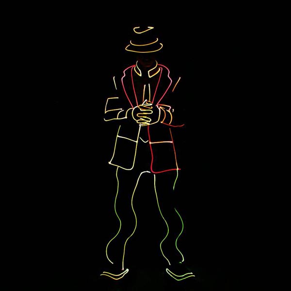Hierfür werden Kostüme mit Fiber-Tube (dünnen, von innen beleuchteten Schläuchen) produziert.